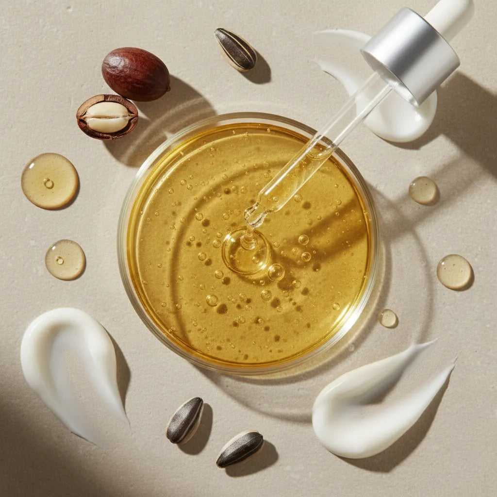 Sonnenblumenkernöl schafft eine schützende Lipidbarriere, die transepidermalen Wasserverlust verhindert, während es essentielle Fettsäuren liefert. Vitamin E bietet Antioxidantienschutz gegen Umweltschäden und freie Radikale.